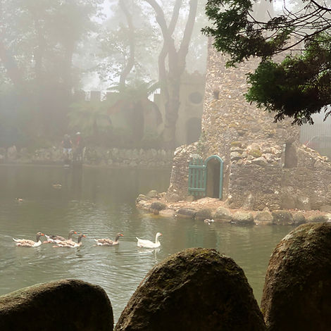 Inside and out, the palace and it’s nearby gardens are a royal dazzle for the eye. Testament to its strategic hilltop-near-the-sea location, fog and mist add mystery to timeless charm. A feathered patrol paddles the meandering ponds like royal sentries while expressive gargoyles oversee the higher grounds.